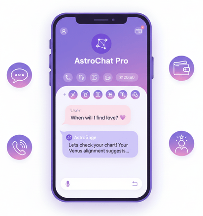 Start your astrology business with our ReadyMade Astrology Mobile App – Android & iOS supported. Get chat, call, wallet, astrologer panel, and more – all in one!